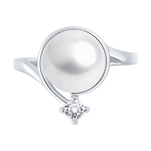 Элегантное серебряное кольцо из 925 пробы украшено натуральным жемчугом и сверкающим фианитом. Жемчуг придает изделию нежность и утонченность, а фианит добавляет блеска и сияния. Серебро подчеркивает естественную красоту камня и позволяет кольцу гармонично вписаться в любой образ. Такой аксессуар станет прекрасным дополнением к вашему стилю, подчеркивая вашу индивидуальность и элегантность. Представлено брендом SOKOLOV. Средняя характеристка камней: 1 × Фианит недраг, 1 × Жемчуг пресноводный культ. В комплект поставки входит: