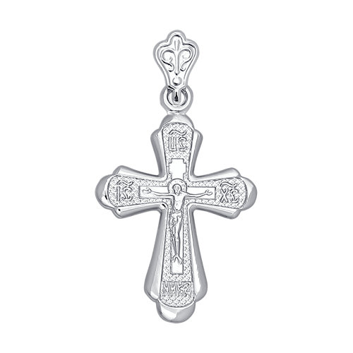 Праволавный крест от бренда SOKOLOV из серебра 925 пробы, с алмазной гравировкой.