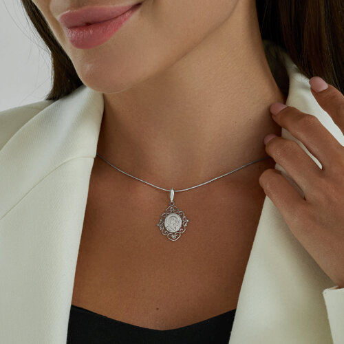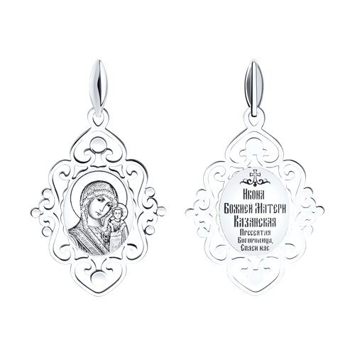 Подвеска-икона Божьей Матери, Казанская, выполнена из родированного серебра 925 пробы с алмазной гранью и лазерной обработкой. Родий - это металл платиновой группы, который защищает украшение от внешних воздействий и долго сохраняет первоначальный внешний вид. От бренда SOKOLOV. В комплект поставки входит: