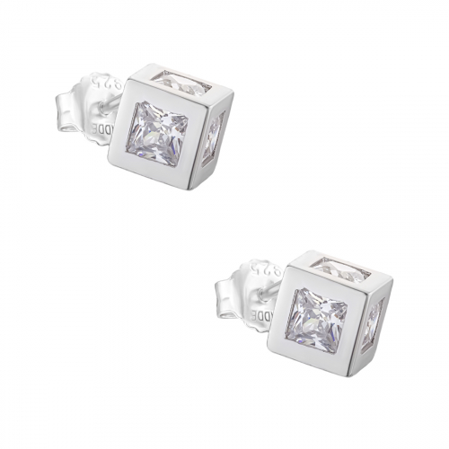 Серебряные пусеты 925 пробы с циркониями имеют оригинальный геометрический дизайн, который подчеркивает современную тенденцию на минимализм и точность линий