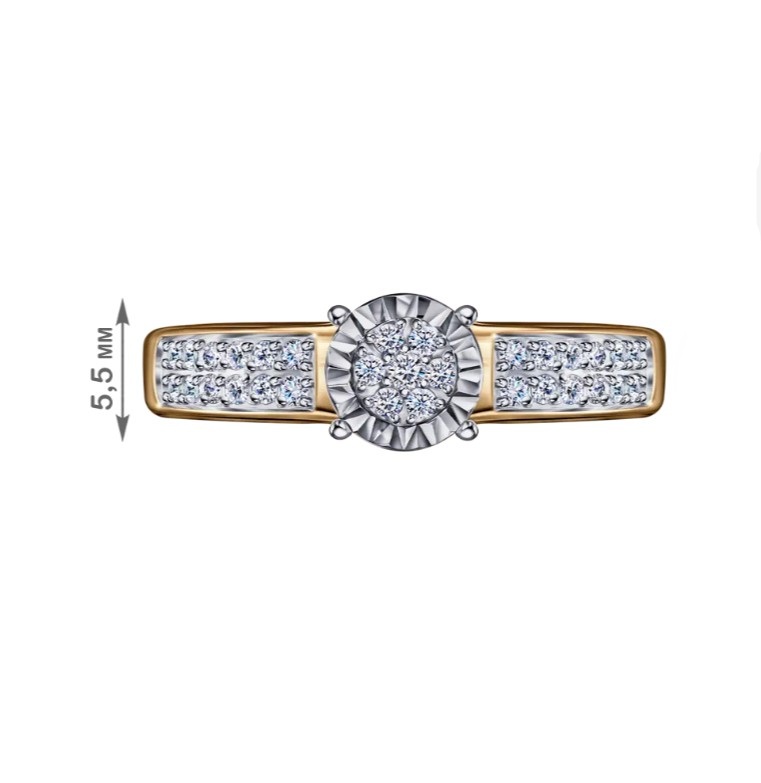 Элегантное кольцо выполнено из красного и белого золота 585 пробы, создавая гармоничный контраст между двумя оттенками металла
