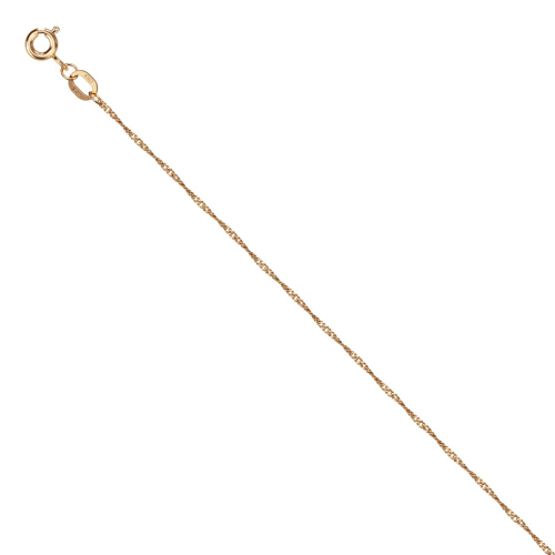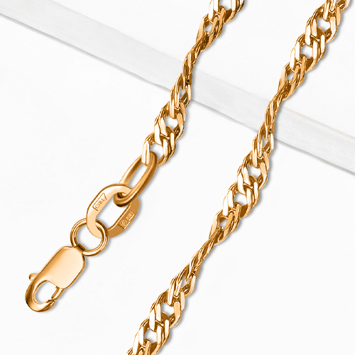 Нежная женская цепь из красного золота 585 пробы в редком плетении «Сингапур» с очаровательной алмазной гранью притягивает взор изящностью и игривым блеском