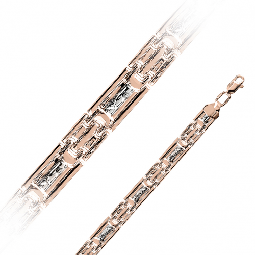 Строгий, лаконичный браслет в геометрическом стиле в традиционном красном золоте, с еле заметными алмазными обработками на белом золоте