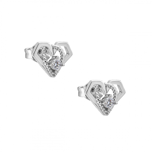 Серебряные пусеты в форме сердечек с фианитами — это милые и стильные серьги, которые станут прекрасным дополнением к вашему образу