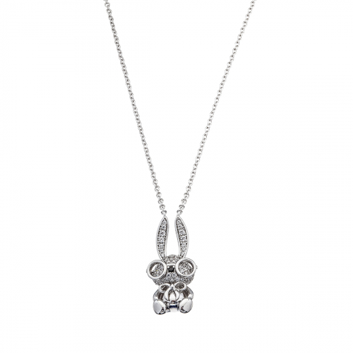 Цепочное колье из серебра с подвеской-зайчиком, украшенное сверкающими фианитами, — это милое и стильное украшение, которое обязательно привлечет внимание
