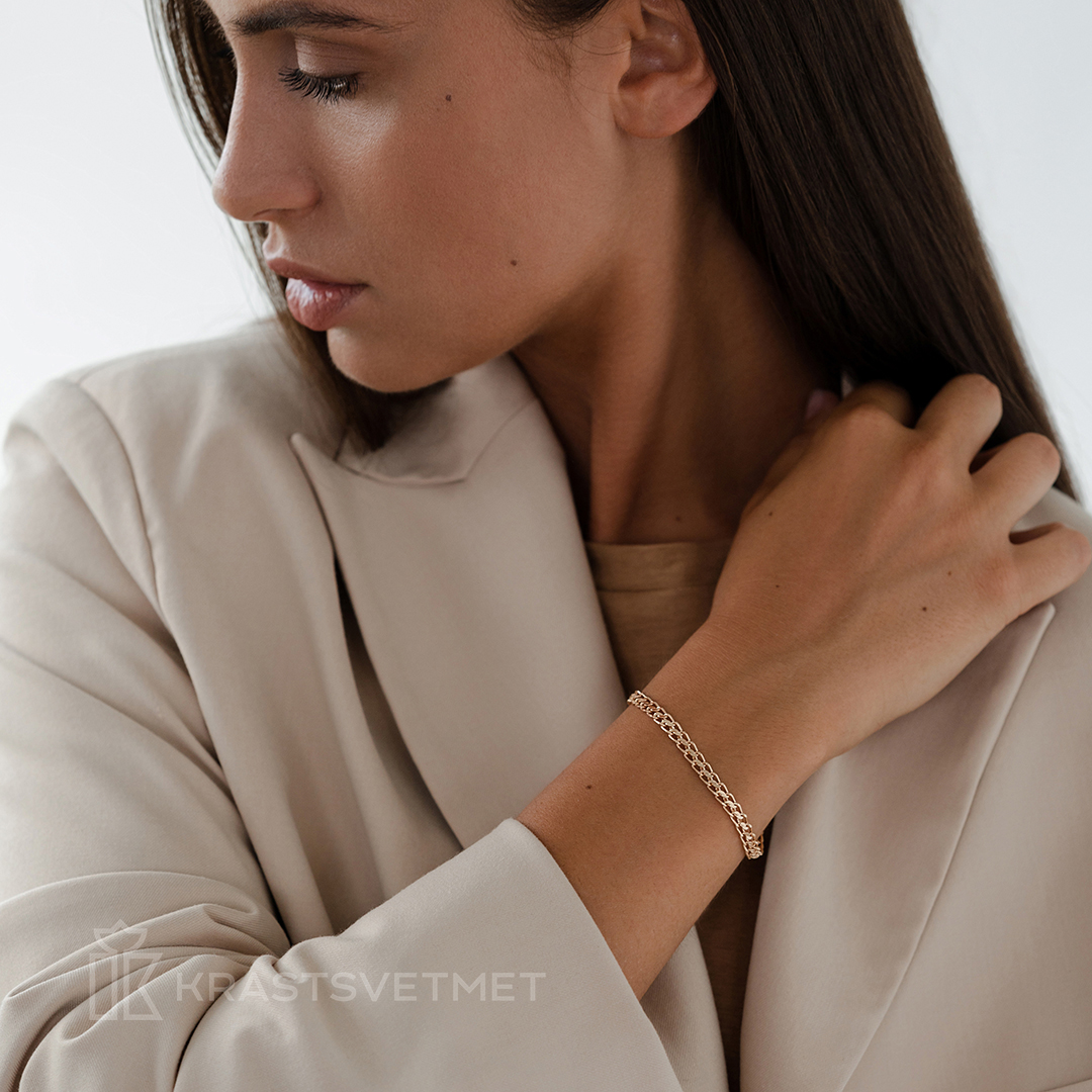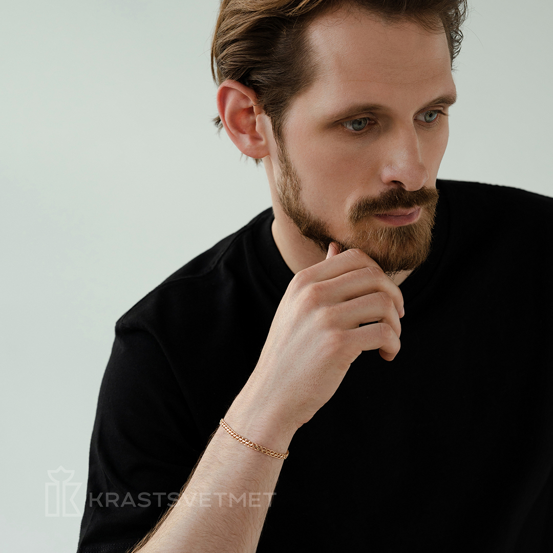 Крупный облегчённый браслет выполнен из красного золота 585 пробы