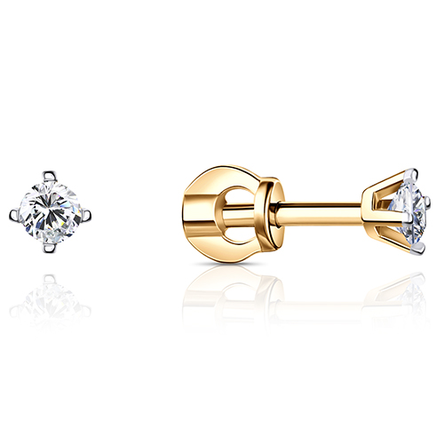 Классические серьги - пусеты, выполнены из комбинированного золота 585 пробы, украшены яркими фианитами