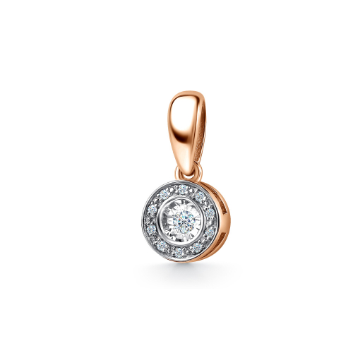 Яркая подвеска в виде геометрической фигуры, выполнена из красного и белого золота 585 пробы, украшена сверкающими бриллиантами