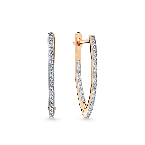 Серьги из белого и красного золота 585 пробы с дорожками сверкающих фианитов и английской застежкой — это элегантное украшение, подчеркивающее вашу индивидуальность и утонченный вкус