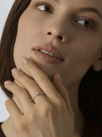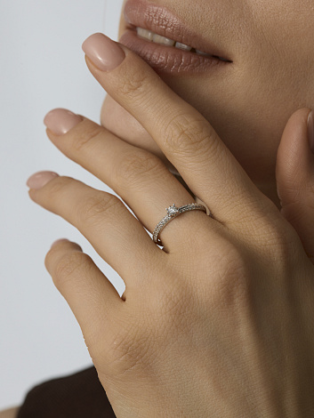 Кольцо из белого золота 585 пробы с бриллиантами — это элегантное и роскошное украшение, подчеркивающее ваш стиль и статус