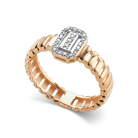 Кольцо выполнено из сочетания красного и белого золота 585 пробы, что создает интересный визуальный контраст. Инкрустированные бриллианты добавляют роскоши и блеска. Такой аксессуар станет прекрасным выбором для тех, кто хочет подчеркнуть свою индивидуальность и чувство стиля. Подходит как для ежедневного ношения, так и для особых мероприятий. Предсталвено брендом АЛЬКОР. Средняя характеристика камней: 3 Бриллиант Круг 57 0.021 4/5, 16 Бриллиант Круг 57 0.05 4/5 В комплект поставки входит: