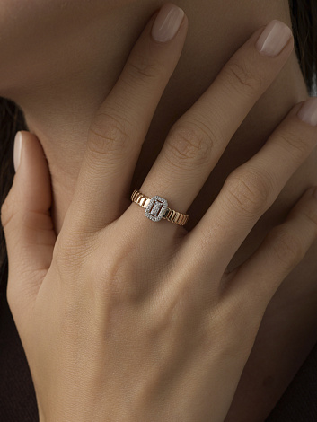 Кольцо выполнено из сочетания красного и белого золота 585 пробы, что создает интересный визуальный контраст