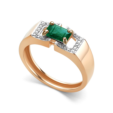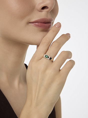Кольцо, комбинированное золото, изумруд, проба 585