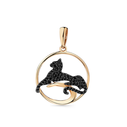 Подвеска круглой формы с пантерой, инкрустированной чёрными фианитами, выполнена из красного золота 585 пробы