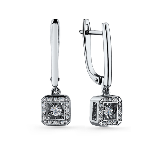 Серьги из белого золота, в центре которых находится "танцующий" бриллиант, окруженный сияющей россыпью камней, привнесут в ваш образ динамику и элегантность