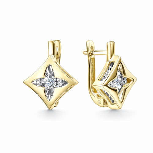Модные и стильные серьги в геометрической фигуре, выполнены из желтого золота 585 пробы, украшены сверкающими бриллиантами. Тип замка - английский замок, самый надежный и удобный.Описание камней: 2 Бриллиант Кр 57 2.2 (25-20) 4/5А 0.083ct Украшение представлено брендом GRIGORIEV В комплект поставки входит: