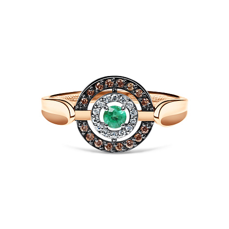 Кольцо из красного золота обладает приятным теплом естественного металла, служащего основой для удивительного дуэта камней. Центр композиции занимает глубокий зеленый изумруд, излучающий спокойствие и мудрость. Дополняют этот богатый колорит мелкие коньячные бриллианты, чье теплое свечение усиливает натуральную прелесть зеленого камня. Кольцо создано специально для любителей природных оттенков и тонких деталей, представляя идеальный выбор для особых случаев и праздничных моментов. Представлено брендом АЛЬКОР. Средняя характеристика камней: 14 Бриллиант Круг 17 0.048 2/3, 1 Изумруд Круг 0.103 3/3, 16 Бриллиант Круг 57 0.087 7/6 коньяк В комплект поставки входит: