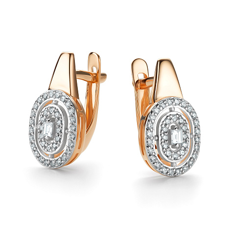 Изысканные серьги представлены в оригинальной комбинации красного и белого золота 585 пробы, которые создают приятный контраст и придают украшению особый шарм. Серьги украшены качественными бриллиантами, чей естественный блеск идеально подчеркивает благородство золота. Надежность крепления обеспечивается удобным английским замком. Данный комплект подойдёт как для ежедневного ношения, так и для торжественных мероприятий, будучи частью персонального стиля современной женщины. Представлено брендом АЛЬКОР. Средняя характеристика камней: 2 Бриллиант Багет 25 0.052 3/5, 72 Бриллиант Круг 17 0.3 2/3 В комплект поставки входит: