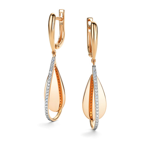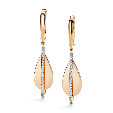 Женственные и элегантные серьги изготовлены из благородного красного и белого золота 585 пробы, стильно комбинирующих теплые и холодные оттенки