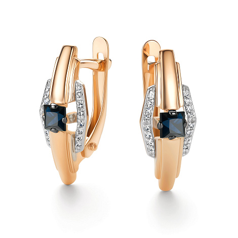 Элегантные серьги выполнены из престижного красного и белого золота 585 пробы, создавая соблазнительную комбинацию цветов. Основные акценты сделаны на роскошных сапфирах и прекрасных бриллиантах, создающих завораживающую игру света и теней. Гармоничное соединение разных оттенков золота и ценных камней позволит вам подчеркнуть индивидуальный стиль и стать истинным украшением любого вечера. Представлено брендом АЛЬКОР. Средняя характеристика камней: 32 Бриллиант Круг 57 0.079 4/5, 2 Сапфир Квадрат 0.412 2/2 В комплект поставки входит:
