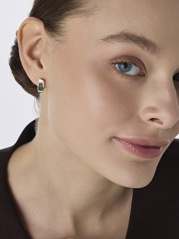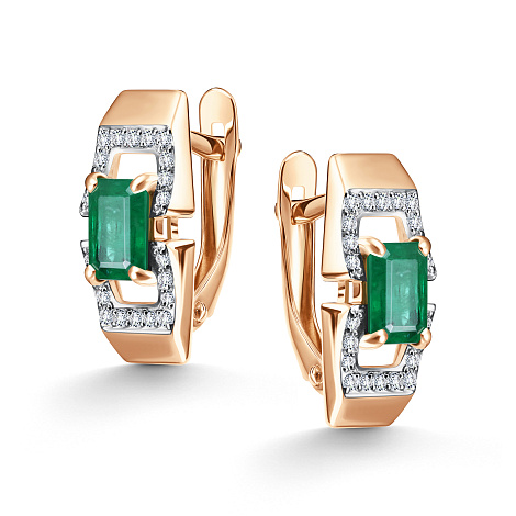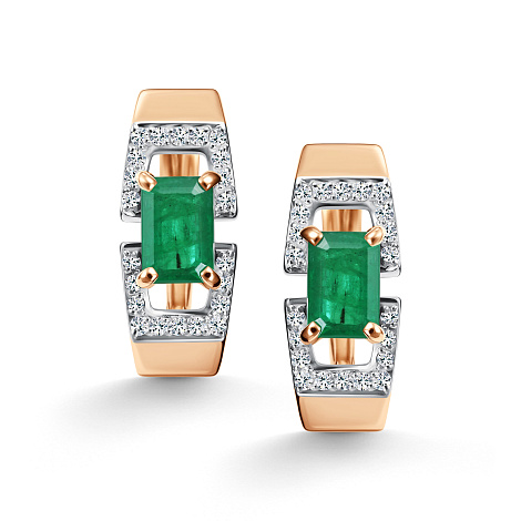 Серьги, комбинированное золото, изумруд, проба 585