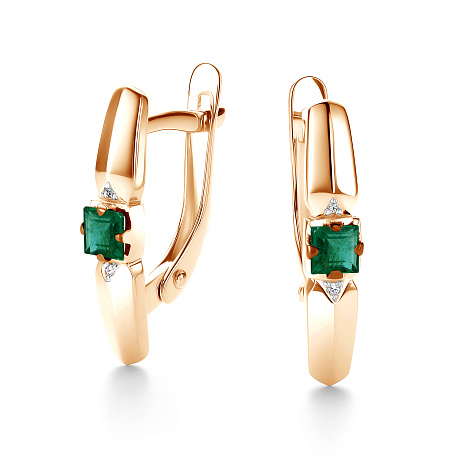 Серьги, красное золото, изумруд, проба 585