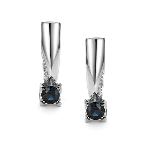 Серьги, белое золото, сапфир, проба 585