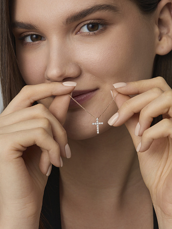 Подвеска выполнена в виде декоративного креста из красного и белого золота 585 пробы
