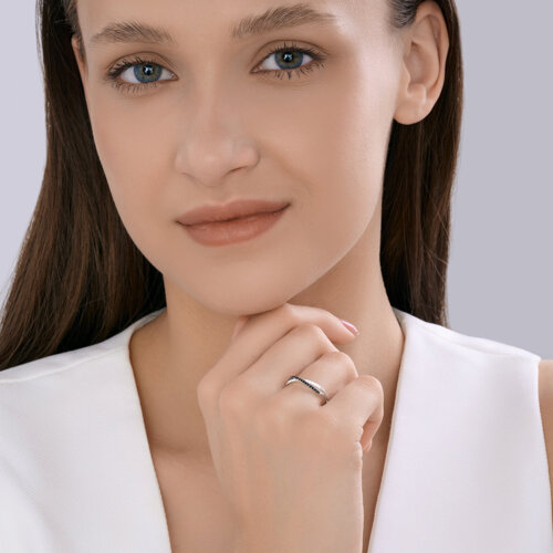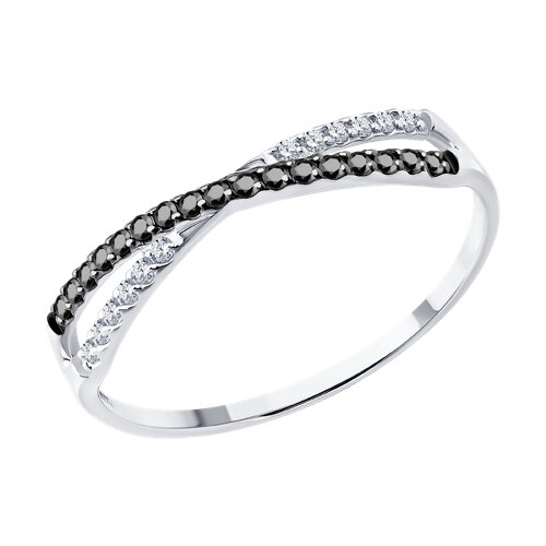 Изящное кольцо выполнено из белого золота 585 пробы. Украшение имеет классический и универсальный дизайн, который прекрасно дополнит любой образ. Черные и белые фианиты делают кольцо стильным и современным, идеально подходящим как для повседневной носки, так и для особых случаев. Представлено брендом SOKOLOV. Средняя характеристика камней: 29 × Фианит недраг В комплект поставки входит: