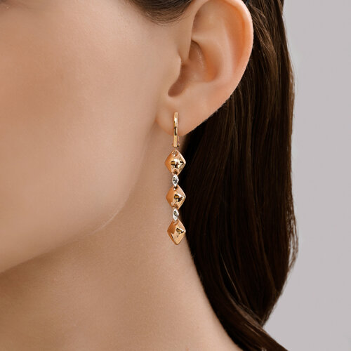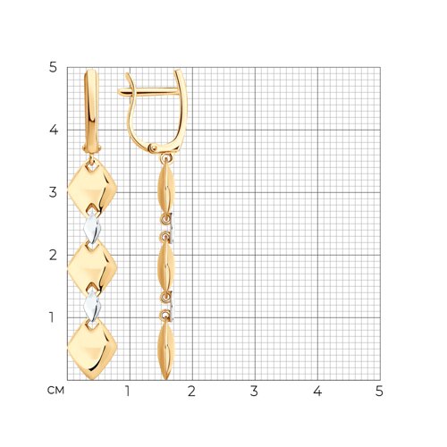 Удлиненные серьги поражают своим необычным дизайном, выполненным из роскошного красного и холодного белого золота 585 пробы