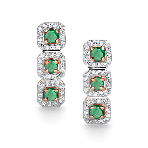 Серьги, комбинированное золото, изумруд, проба 585