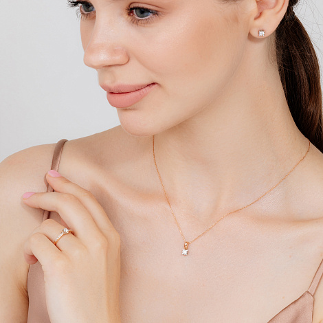 Элегантные серьги-пусеты с великолепными бриллиантами, выполнены с сочетанием красного и белого золота 585 пробы