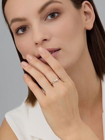 Кольцо, комбинированное золото, бриллиант, проба 585