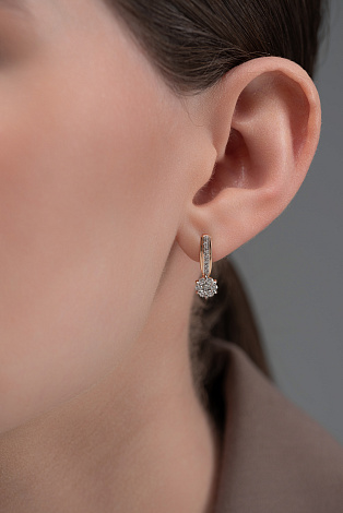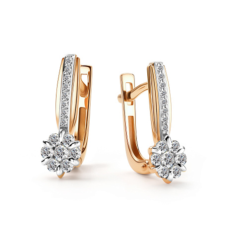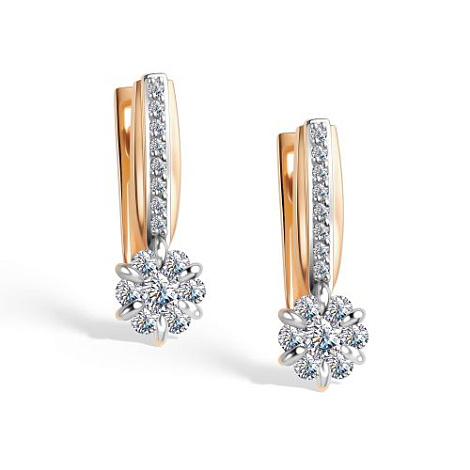 Роскошные серьги украшеные россыпью сверкающих бриллиантов, выполнены с сочетанием красного и белого золота 585 пробы