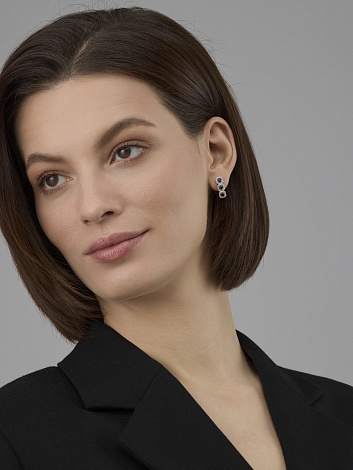 Серьги из белого золота 585 пробы из коллекции Magic Colors компании «Алькор» — это гармоничное сочетание насыщенного цвета сапфира и сверкающего огня бриллиантов