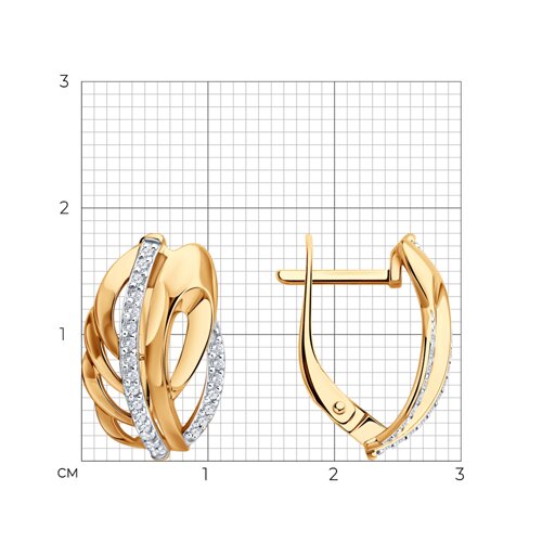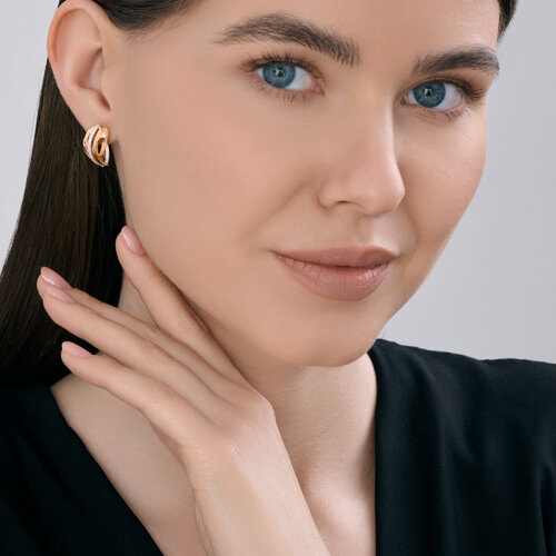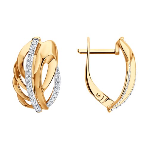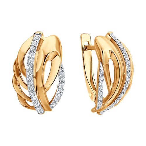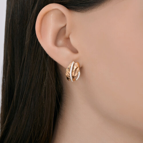 Элегантные серьги выполнены из качественного красного и белого золота 585 пробы, гармонично сочетающихся между собой и придающих украшениям стиль и индивидуальность