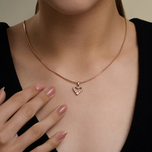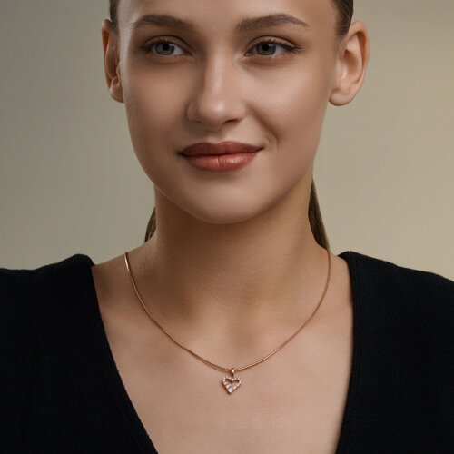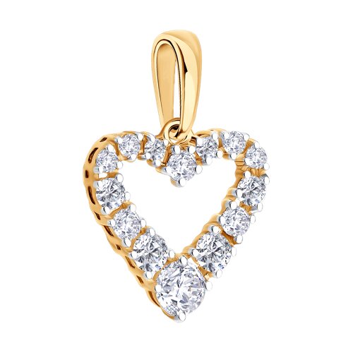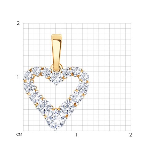 Изящная подвеска выполнена из красного золота 585 пробы, что придает изделию особую привлекательность. Форму украшения определяет символичное сердце, украшенное сверкающими фианитами, играющими роль ярких декоративных элементов. Такой аксессуар станет идеальным выбором для проявления романтических чувств и подчеркивания индивидуальной изысканности. Подходит как для повседневного, так и для праздничного образа. Представлено брендом SOKOLOV. Средняя характеристика камней: 14 × Фианит недраг В комплект поставки входит: