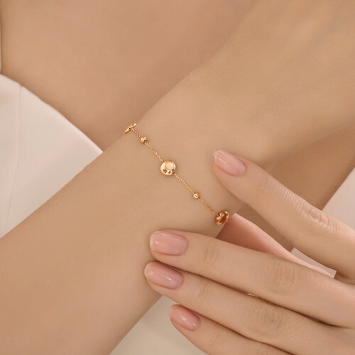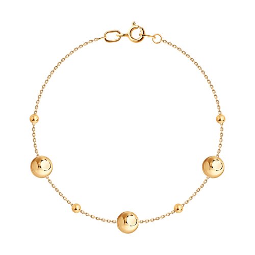 Браслет выполнен из красного золота 585 пробы и имеет цепочную структуру, что придает ему гибкость и способность повторять контур руки. Дополнительным украшением служат небольшие шарики-вставки, которые располагаются на звеньях цепи, создавая ритм и рельеф. Благодаря такому решению браслет выглядит элегантно и утонченно, что делает его универсальным аксессуаром, подходящим как для повседневного ношения, так и для праздничных мероприятий. Представлено брендом SOKOLOV. В комплект поставки входит: