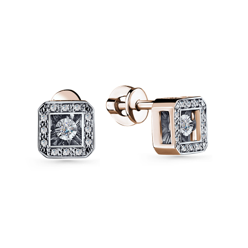 Изящные серьги-пусеты из серии "Танцующие бриллианты", выполненные из комбинированного золота 585-й пробы и украшенные сверкающими бриллиантами