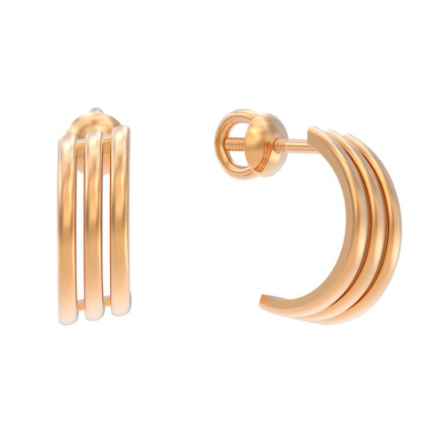 Элегантные объемные серьги- пусеты оригинального дизайна выполнены из красного золота 585 пробы. Тип замка - винтовой, самый надежный и комфортный. Украшение без камней – идеальный вариант на повседневную носку. Изделие представлено брендом: АРИНА. В комплект поставки входит: