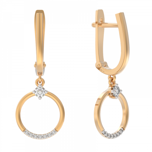 Удлинённые серьги выполнены в сочетание красного и белого золота 585 пробы, украшены сверкающими фианитами