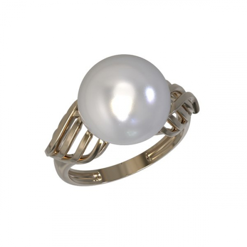 Нежное кольцо выполнено из красного золота 585 пробы, украшено великолепным жемчугом белого цвета