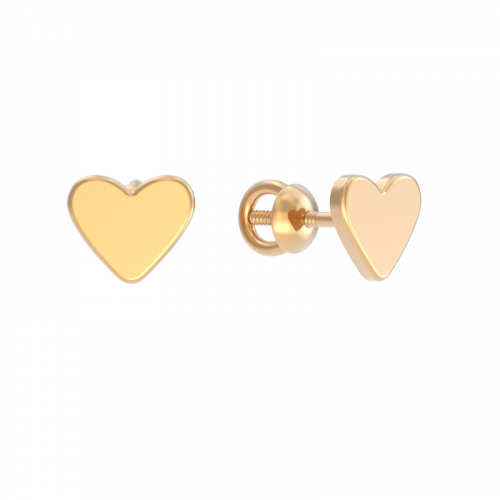 Милые и романтичные серьги-пусеты, в виде сердечек, выполнены из красного золота 585 пробы