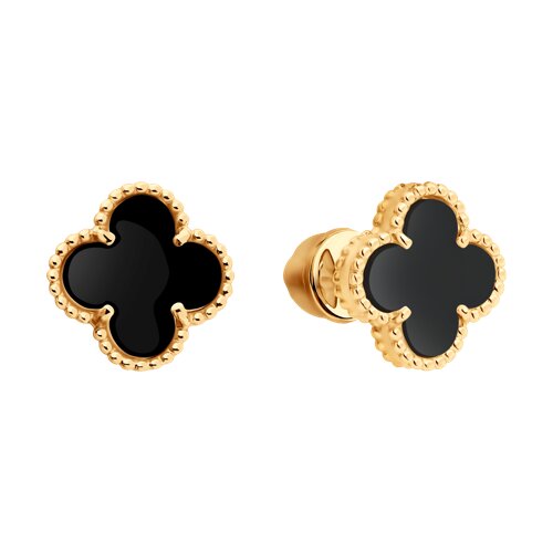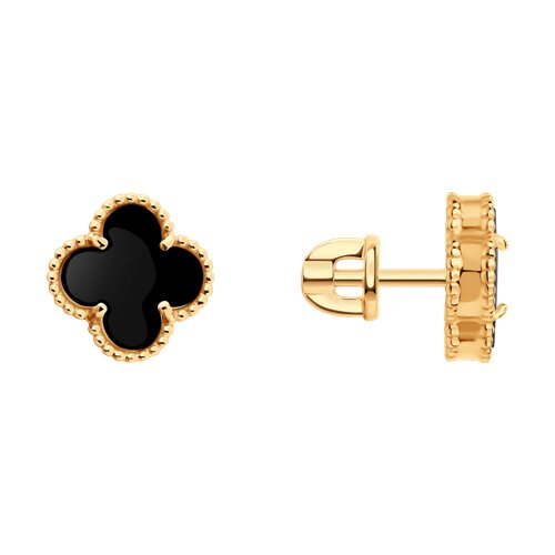 Серьги, красное золото, оникс, проба 585