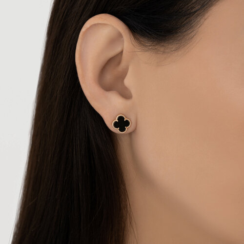 Элегантные пусеты выполнены из красного золота 585 пробы и оформлены в популярном дизайне четырехлистного клевера, символизирующего удачу и благополучие. Центральное место в каждой серьге занимает черный оникс, известный своей мистической красотой и способностью приносить защиту и стабильность. Золото 585 пробы гарантирует прочность и длительный срок службы изделия. Эти пусеты станут стильным дополнением как повседневного, так и праздничного образа. Представлено брендом SOKOLOV. Средняя характеристика камней: 2 × Оникс природный Черный Клевер 8.00*8.00 ~1,870 кар В комплект поставки входит:
