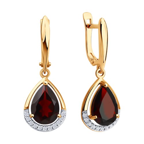 Серьги, комбинированное золото, гранат, проба 585
