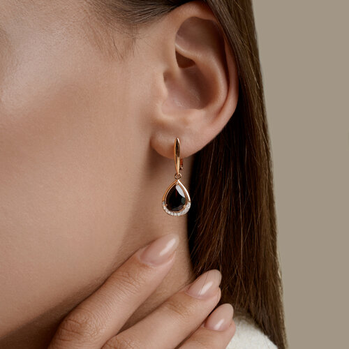 Элегантные серьги выполнены из благородного сочетания красного и белого золота 585 пробы, что придает им особый шарм и изысканность