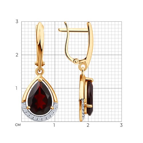 Элегантные серьги выполнены из благородного сочетания красного и белого золота 585 пробы, что придает им особый шарм и изысканность. Украшением служат гранаты насыщенного красного цвета, символизирующие страсть и энергию, а также сверкающие фианиты, подчеркивающие красоту драгоценных камней. Надежный английский замок обеспечивает комфорт и безопасность при ношении. Эти серьги станут прекрасным дополнением как повседневного, так и праздничного образа, подчеркивая индивидуальность и стиль своей обладательницы. Представлено брендом SOKOLOV. Средняя характеристика камней: 22 × Фианит недраг, 2 × Гранат В комплект поставки входит: