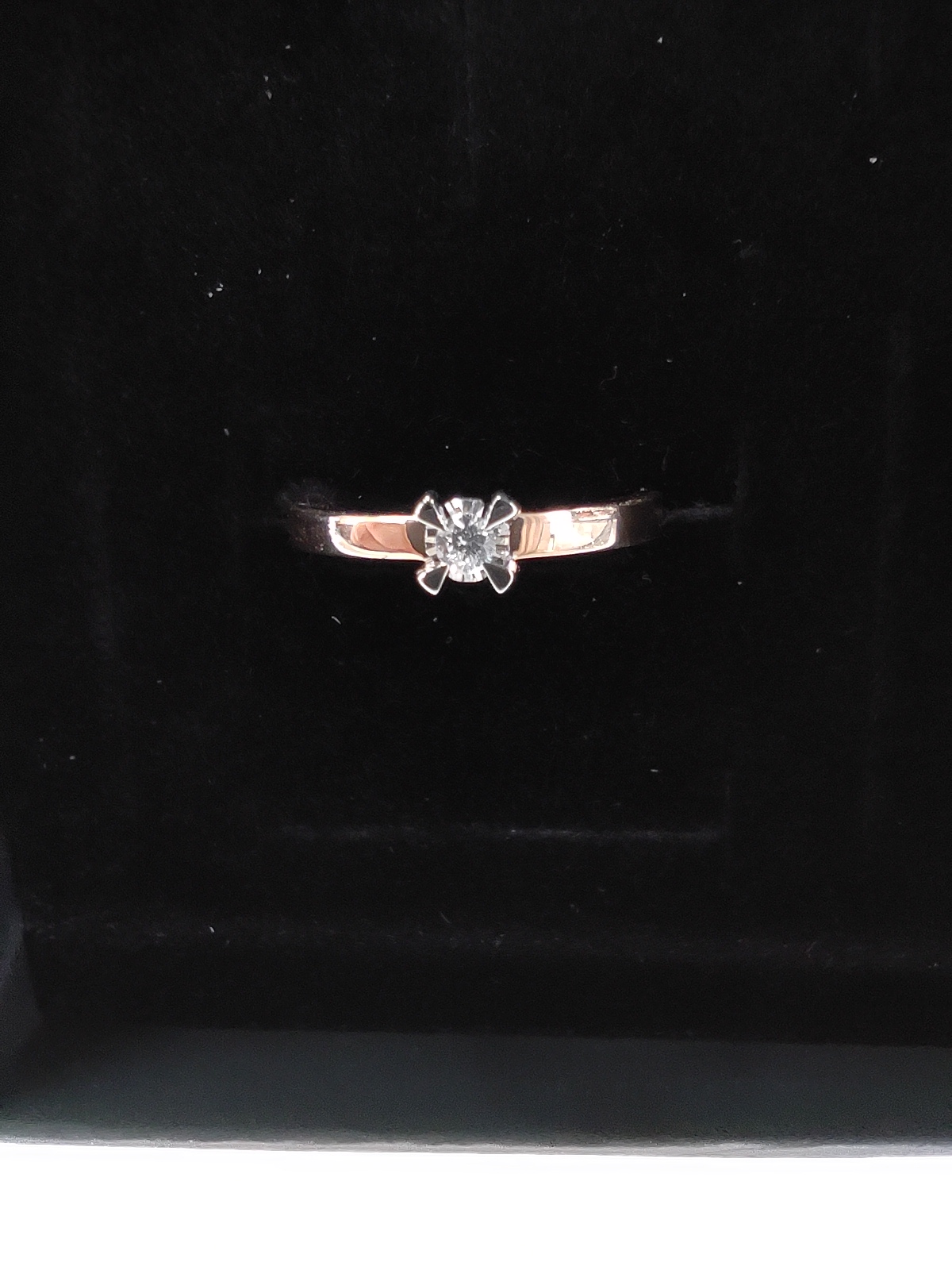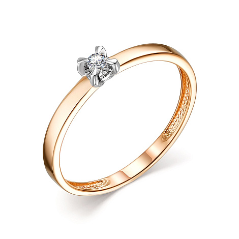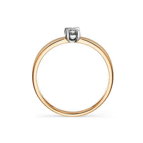 Роскошное романтичное кольцо выполнено в сочетании красного и белого золота 585 пробы, украшено великолепным сияющим бриллиантом