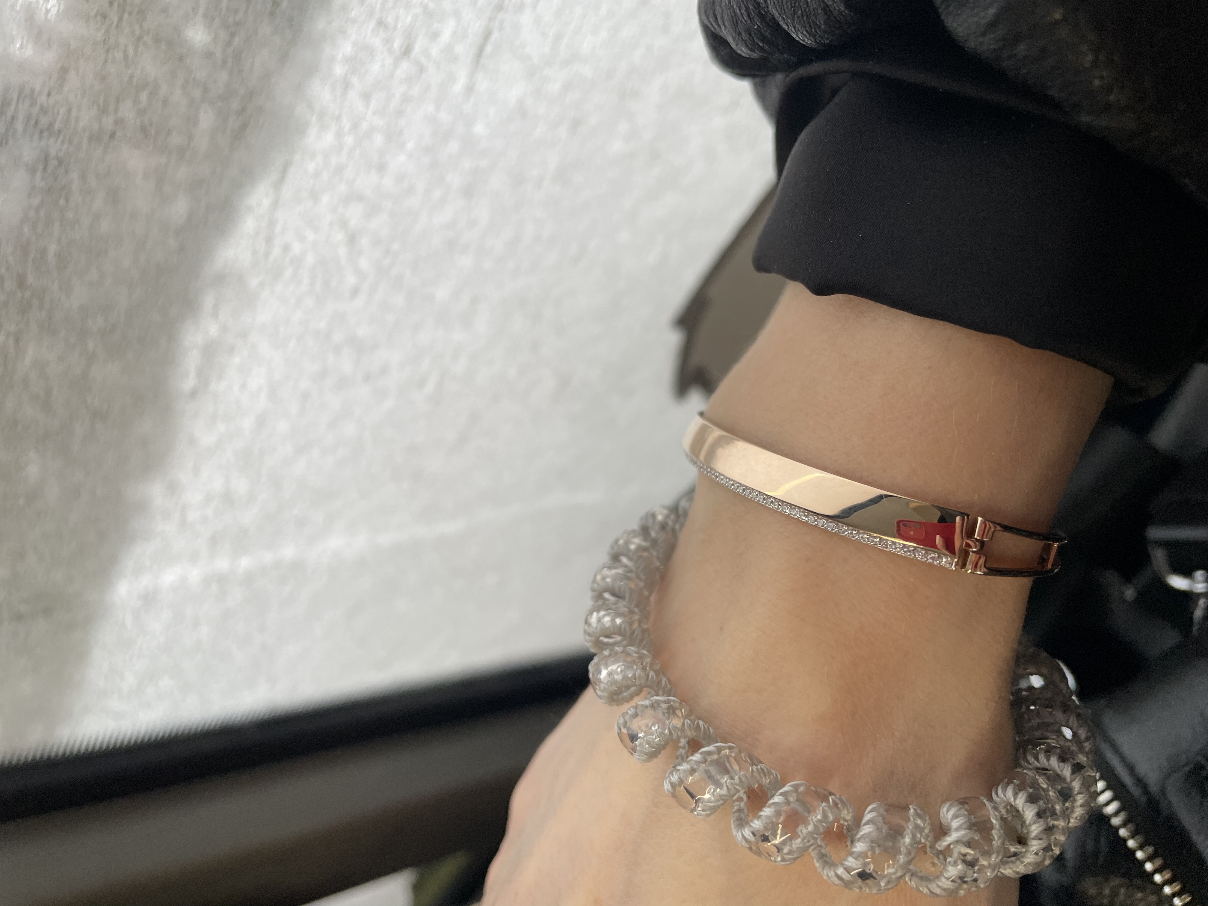 Элегантный жесткий браслет из красного и белого золота 585 пробы, украшенный дорожкой сверкающих фианитов